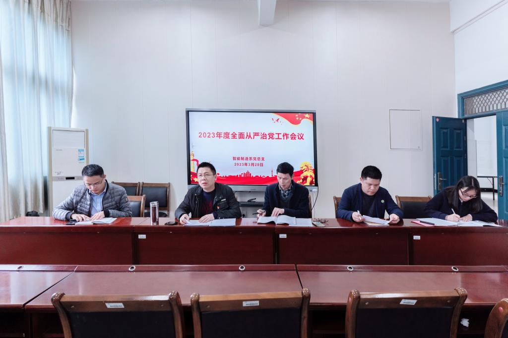 为了贯彻落实3月23日召开的学院2023年度全面从严治党工作会议精神,3月28日下午,智能制造系党总支在系部4楼会议室召开2023年度全面从严治党工作会议,会议认真总结2022年工作,部署2023年系部全面从严治党工作任务。院党委委员、副院长谢金生出席会议,系党政领导班子、系部全体教师参加了会议,会议由系党总支书记、主任罗志斌主持。