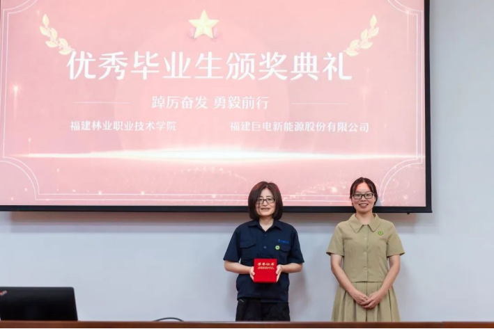 夏至已至,凤凰花开,骊歌唱响,青春启航。6月27日,我系与福建巨电新能源股份有限公司联合培养的机电一体化技术专业2023届“二元制”大专班毕业典礼暨优秀毕业生表彰大会在福建巨电新能源股份有限公司隆重举行。福建巨电党总支组织委员、副总经理王占钦,智能制造系党总支书记罗志斌,福建巨电人力资源部负责人范启明,智能制造系党总支专职组织员张良英,智能制造系宣传专员黄悦,企业班主任张玉瓶及“二元制”21名毕业生齐聚一堂,共同见证了属于2023届毕业生的专属盛会。