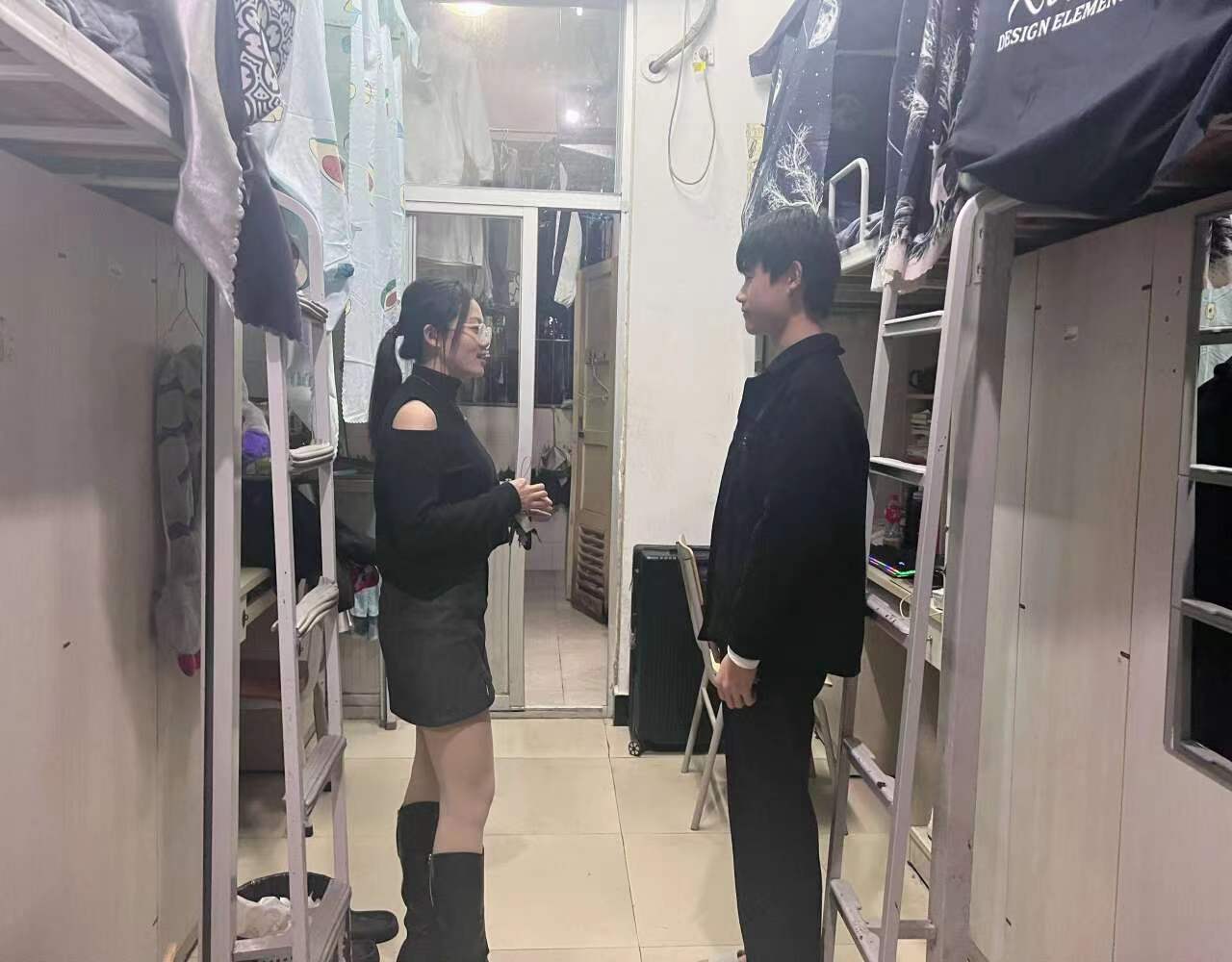 智能制造系党总支书记罗志斌带领系学生科科长张碧清以及学工组各辅导员深入学生宿舍,开展各项消防安全隐患排查,同时,为同学们讲解防诈知识。