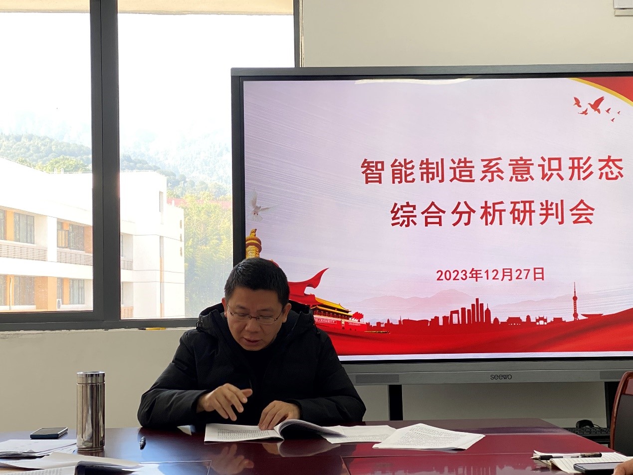 为进一步落实意识形态工作责任制,切实铸牢意识形态安全防线,2023年12月27日上午,智能制造系党总支在智造楼410会议室召开意识形态工作综合分析研判会,分析研判系部意识形态工作情况。会议由系党总支书记罗志斌主持,系党政领导班子成员、各支部书记、宣传专员参加会议。