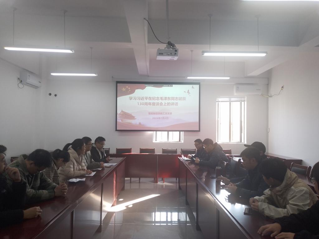 为纪念毛泽东同志诞辰130周年,传承和弘扬革命先辈追求真理、对党矢志不渝的伟大精神,智能制造系各党支部分别于2024年1月4日和1月5日开展“学习习近平总书记在纪念毛泽东同志诞辰130周年座谈会上的讲话”主题读书会。