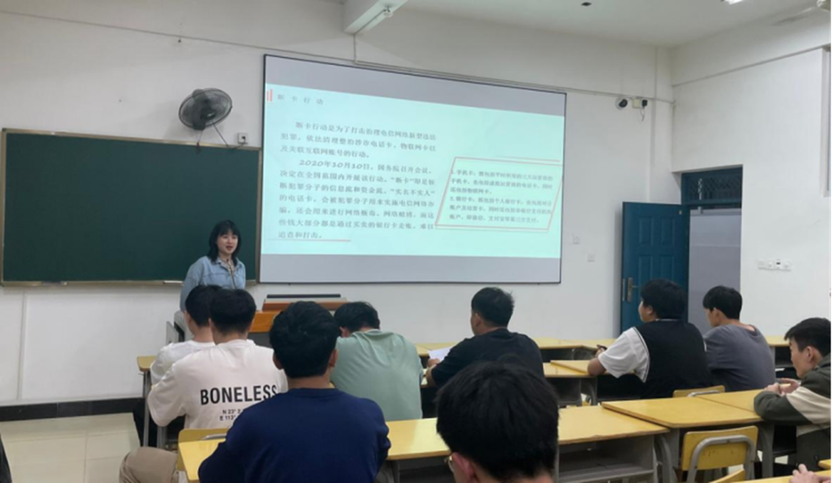 在网络安全方面,辅导员通过PPT展示了近期发生的网络诈骗案例,分析了诈骗分子的惯用手段,并提醒同学们要时刻保持警惕,不轻易泄露个人信息,遇到可疑情况及时报警。
