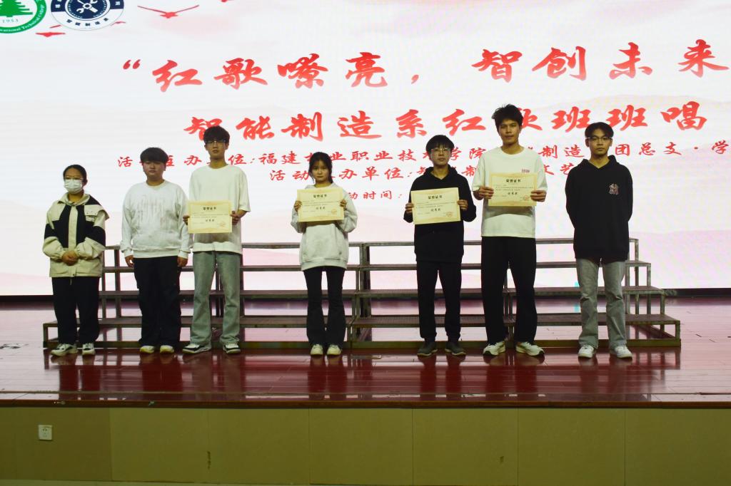 经过激烈角逐,最终评选出了本次大赛的一、二、三等奖以及优秀奖。获奖班级的代表们纷纷上台领奖,他们手中的奖状不仅是对班级努力的肯定,更是对红色精神传承的见证。智能制造系相关负责人表示,此次红歌班班唱大赛是一次非常有意义的活动,它不仅丰富了同学们的校园文化生活,更通过传唱红歌,让同学们在歌声中汲取奋进力量,坚定理想信念,为实现中华民族伟大复兴的中国梦贡献自己的智慧和力量。