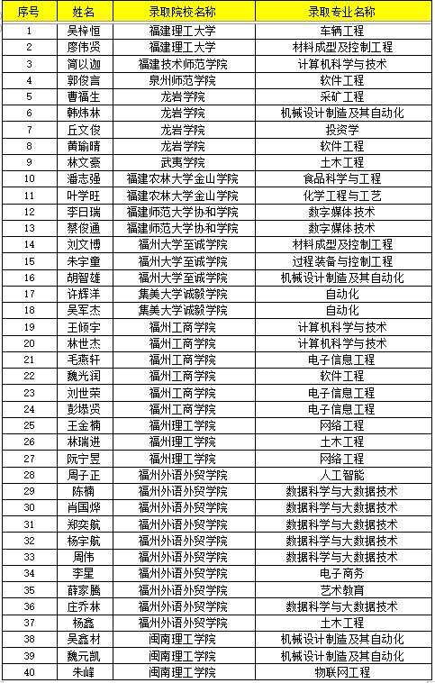 近日,福建省2025年专升本考试成绩正式公布。智能制造系今年共有164名同学报名参考,在激烈的竞争中,79位同学脱颖而出,成功被本科院校录取,录取率达48.2%,与去年相比,提升了6.6个百分点。其中,有9位同学凭借出色的发挥,分别被福建理工大学、福建技术师范学院、泉州师范学院、龙岩学院、武夷学院等公办本科院校录取,开启了人生新的篇章。