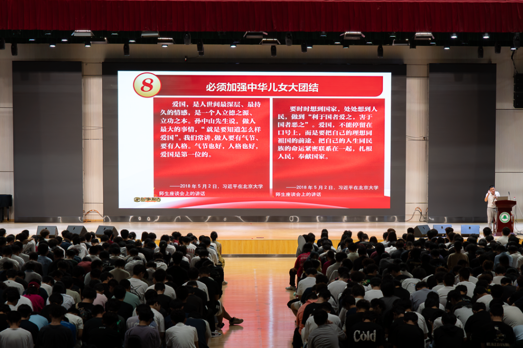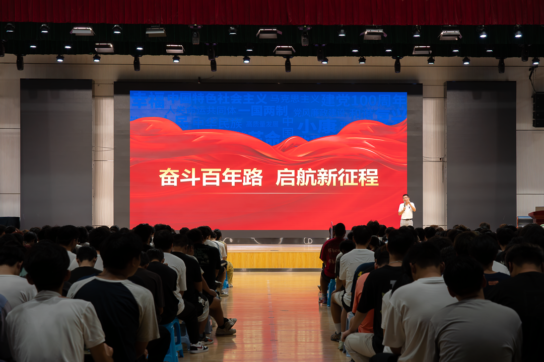 2025年9月16日晚,智能制造系全体新生齐聚江南体育馆,迎来了一场别开生面的“开学第一课”。本次新生入学教育第一课由智能制造系党总支书记罗志斌主讲。主题为《奋斗百年路 启航新征程》,旨在通过回顾中国共产党的丰功伟绩、传承精神血脉、以史为鉴,开创未来,同时加强理想信念教育、爱国主义教育和廉洁教育,为新生们的大学生活指明方向。