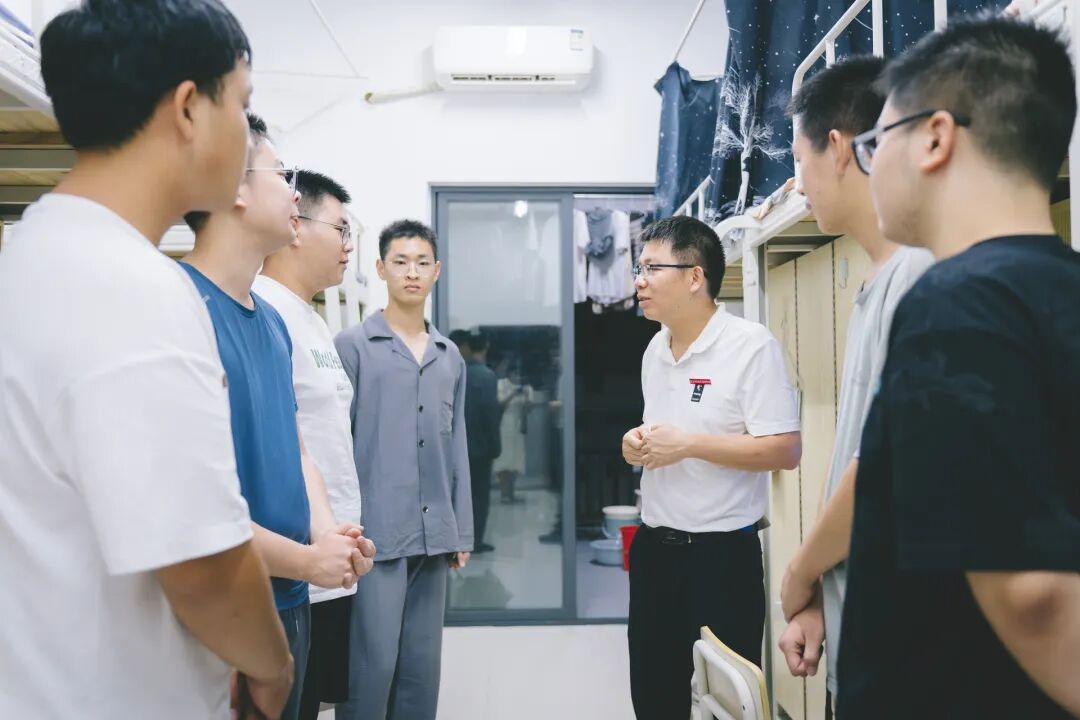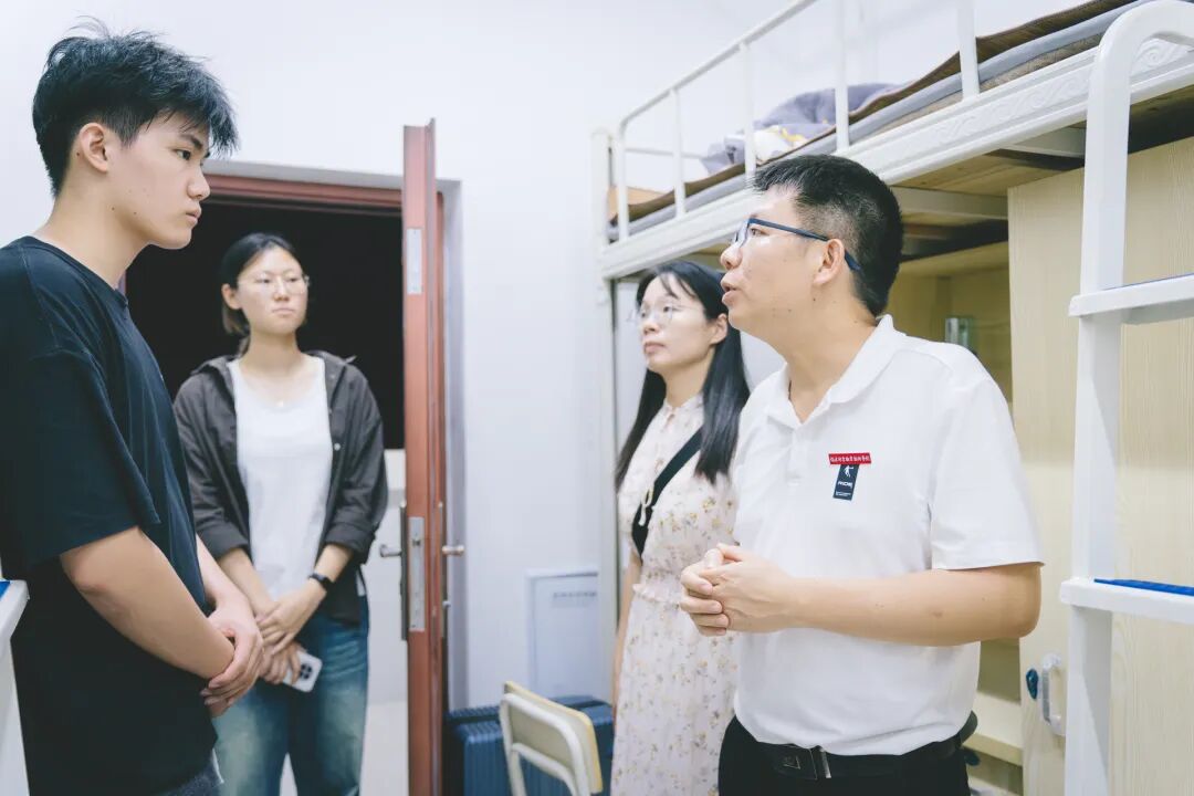 系党总支书记罗志斌与辅导员们细致查看宿舍设施,关心同学们的生活起居。他叮嘱新生要注意人身财产安全,保持宿舍整洁,营造良好的生活环境。遇到任何困难都要及时向辅导员反映,学院就是你们的家,体贴入微的话语让新生们感受到了家的温暖。