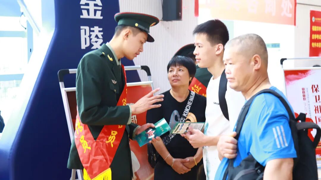 征兵咨询处前,学生们有序咨询。工作人员耐心解答入伍政策、发展前景等问题,帮助学子们了解军营生活。