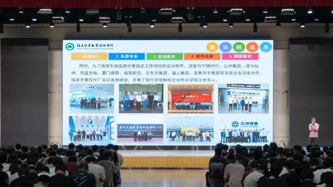 讲座伊始,官飞老师带新生开启追溯学院历史的 “时光之旅”,从 “天麟兴学,北园建校” 的初心,到时代变迁中扩大规模、优化体系的探索,再到 “内涵发展,多域联动” 的新阶段,每段故事都生动鲜活。他强调,学院的良好声誉源于一代代林职人的耕耘奉献,这份坚守已成独特文化基因。随后介绍智能制造系,从初期专业设置到课程建设、企业合作、技能比赛的成果,提及系部在 “八系二院一部” 中的重要角色,让新生自豪感与归属感倍增。
