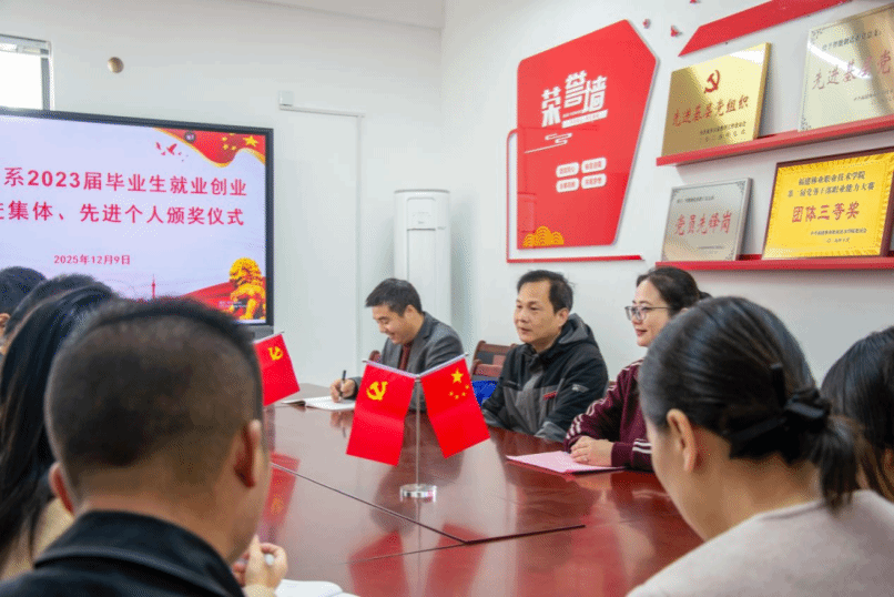 更新时间:2025/12/10 23:31本网讯 为表彰先进、树立典型,进一步激发全院教职工做好就业创业工作的积极性与主动性,推动学院就业创业工作再上新台阶,2025年12月9日上午,学院党委委员、副院长黄晖带领招生就业处全体成员到系部为获奖集体及个人颁奖。