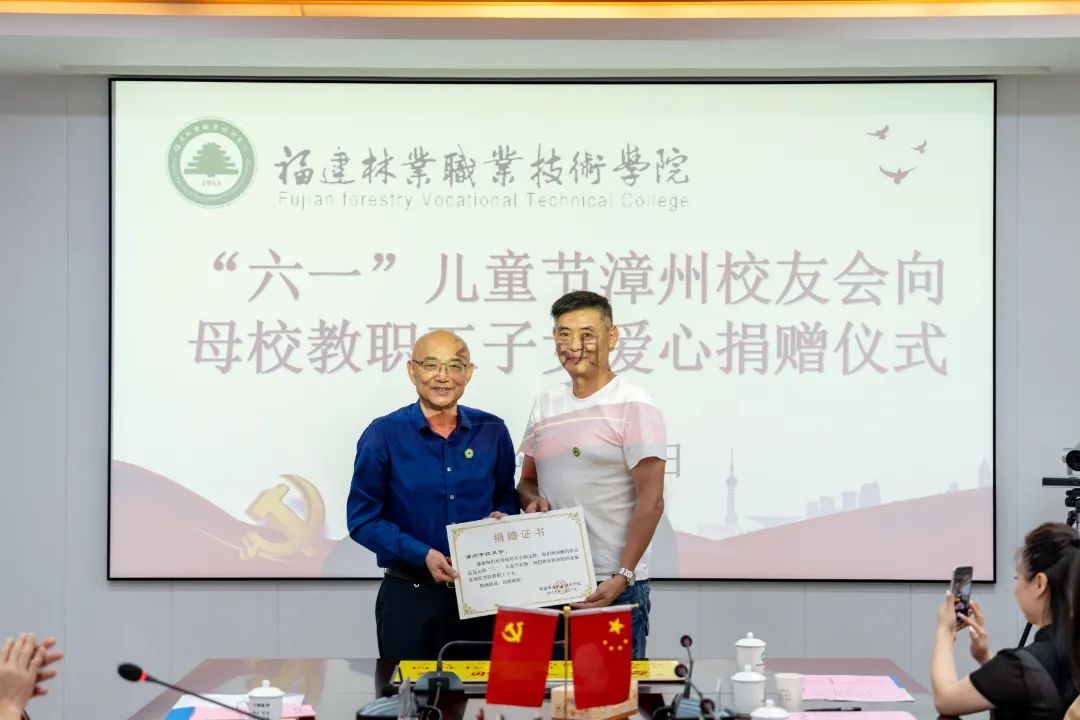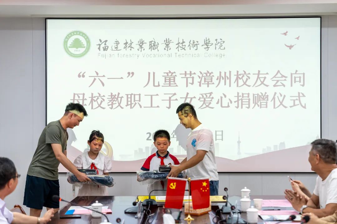 更新时间:2023/05/30 07:20本网讯5月27日下午,学院于行政楼5楼会议室举行漳州校友会“六一”儿童节捐赠仪式暨校友企业家返校座谈会,致谢关心教职工子女的广大校友,携手校友企业共同谋划学院发展的美好蓝图。学院党委书记万泉、副院长李肇锋、党政办公室主任廖世建、人事教育处处长黄丽霞、工会常务副主席张毅、艺术传媒系党总支书记陈政、信息工程系党总支副书记(主持工作)叶文美以及相关工作人员、教职工代表、儿童代表参加本次活动。漳州校友会执行会长兼执行秘书长林结顺、常务副会长张提顺、常务副会长林丕忠、常务副会长郑毅群、常务理事林明安、常务理事陈志鹏、秘书处郭艺敏等校友参加活动。活动由学院副院长李肇锋主持。