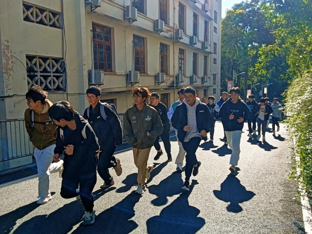 实践操作,技能提升:警报声突然划破天际,如同战鼓般激昂。学生们迅速按照预先规划的逃生路线,用湿毛巾或手捂住口鼻,弯腰前行,模拟穿越浓烟弥漫的走廊。在疏散过程中,学生们体验到了在紧急情况下保持冷静的重要性,也学会了如何在烟雾中寻找安全出口。