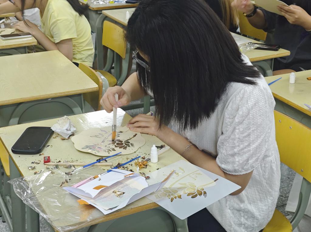 贴箔画艺术承载着千年金箔工艺的文化基因,将独特的非遗底蕴与现代审美相融合,展现出与时俱进的创新活力。此次活动以贴箔画创作为核心,不仅为参与者提供了培养艺术鉴赏力与动手实践能力的平台,还为校园美育建设注入新活力。