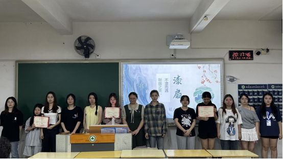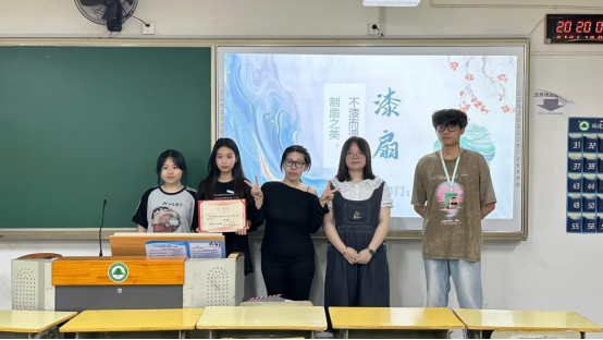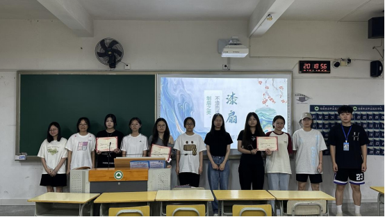 活动决赛以漆扇文化介绍为核心环节,于5月20日在科教楼404教室开展。参赛者通过现场讲解与展示,深化对漆扇文化内涵的理解。讲述中,参赛者感慨于打磨扇骨时木纹与指尖的 “对话”,深切体会到 “制扇至美,不‘漆’而遇” 的内涵;决赛不仅考验团队协作与文化表达能力,更让漆扇成为团队默契的试金石——大家在领悟传统漆艺 “慢工出细活” 精髓的同时,因艺术共鸣凝聚情谊。