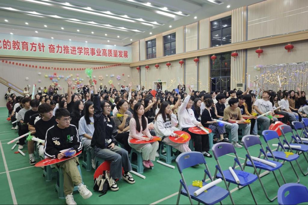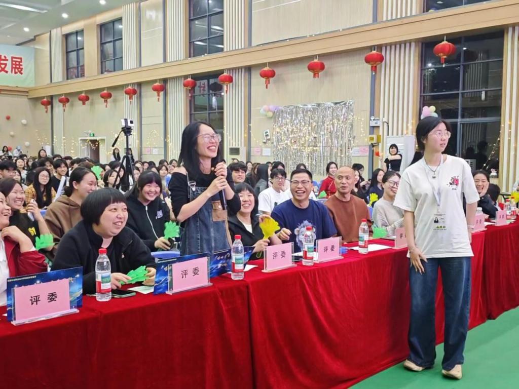 比赛中途,听伴奏猜歌名游戏将现场气氛推向高潮。当熟悉的旋律响起,台下的同学们瞬间沸腾,纷纷踊跃举手抢答。老师们也被这欢乐的氛围感染,参与其中,与学生们为游戏增添了不少温馨与欢乐,现场满是青春活力与欢声笑语。