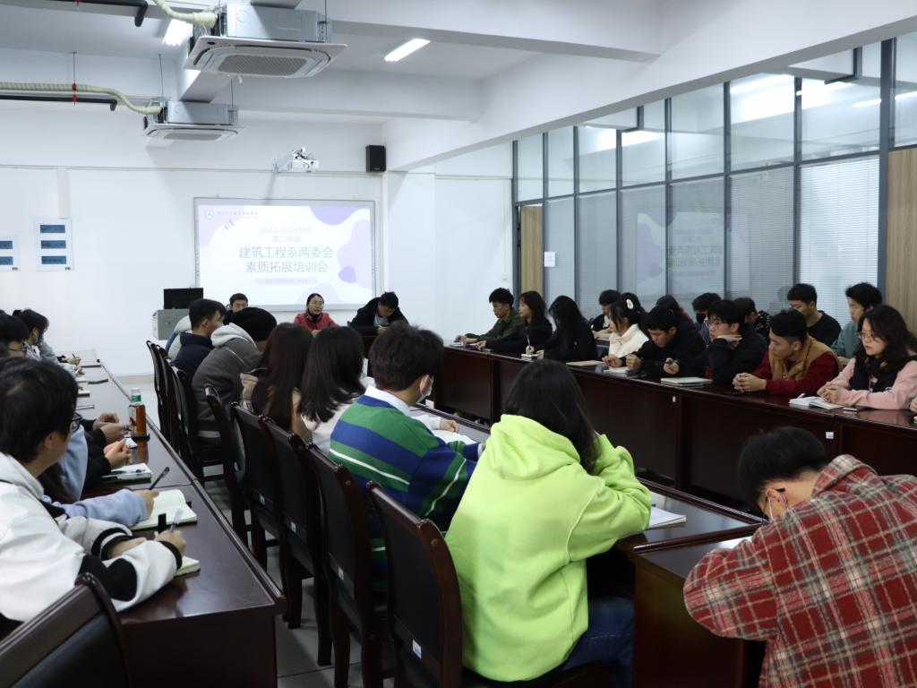新学期伊始,为提升我系两委会学生干部素质,加强学生干部队伍建设,增强组织凝聚力,更好地协同开展新学期两委会工作,2023年2月17日在建工楼5楼会议室召开了2022-2023学年第二学期第一次两委会学生干部素质拓展培训会,本次培训会由建筑工程系学生科科长兼团总支书记刘克芹主持,建筑工程系两委会主席团、各部门部长以及部分大一干事代表参加培训。