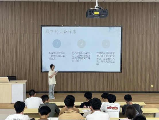 在本次培训中,办公室负责人潘欣倩首先详细对财务管理的相关工作进行专题讲解,包括报销流程、资金使用规定以及后续所需提交的材料等,帮助学生干部更好地理解和掌握财务管理的基本技能。秘书处负责人李佳忆与纪检部负责人梁坤山则围绕加扣分单的制作和提交要领进行讲解,强调了加扣分单的制作格式、填写规范、提交时间以及注意事项,确保学生干部在加分和扣分过程中能够准确、及时地完成相关操作。
