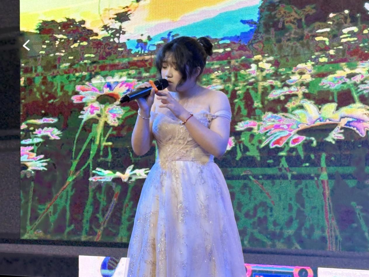 舞台上,选手们全心投入、绽放光芒,用各具特色的嗓音诠释音乐魅力,展现真我风采;台下观众热情高涨,掌声、喝彩与创意应援交织不断,将夜幕下的礼堂化为一片青春的声浪与梦想的海洋。其中,张曾鑫同学演唱的《天后》一曲,呈现出忧愁伤感与张力十足并存的风格,旋律具有较强的吸引力;周延涛同学演唱的《明天过后》,整体风格温暖治愈,旋律优美动听,传递出积极励志的情感。