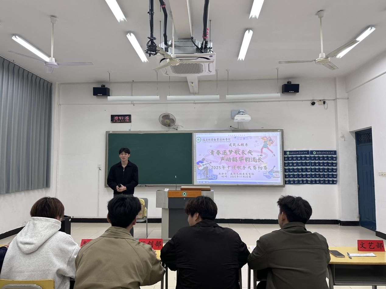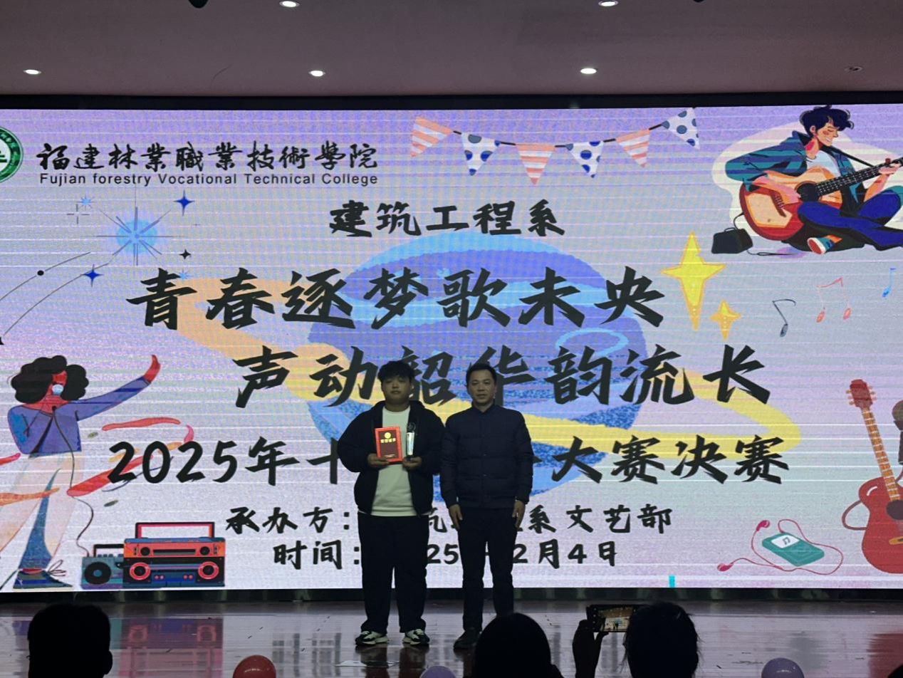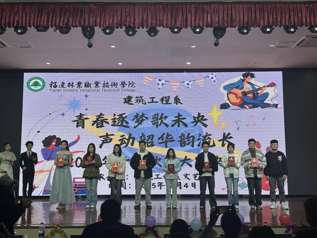 本网讯/2025年12月4日,建筑工程系“青春逐梦歌未央,声动韶华韵流长”十佳歌手大赛决赛在江南礼堂隆重举行。建筑工程系党总支书记魏长专、学生科科长兼团总支书记刘克芹及辅导员出席活动并担任评委。
