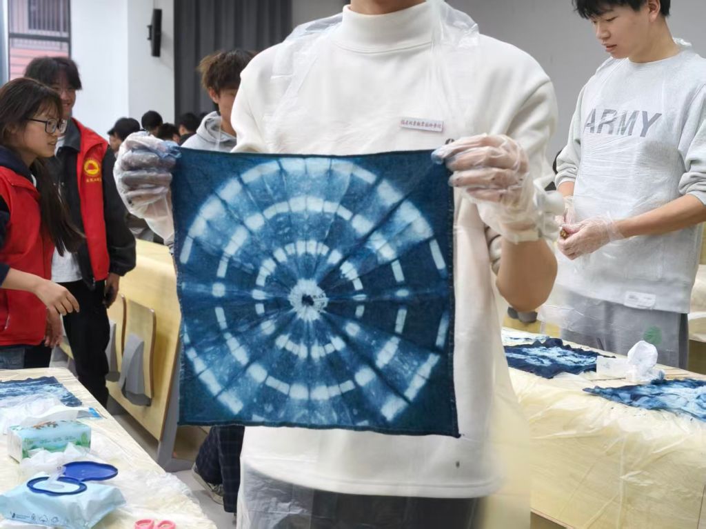 扎染不仅仅是一项传统手工艺,更是一种滋养心灵的生活方式。此次活动的开展,既让大家在沉浸式创作中有效缓解了学业压力,锻炼了创新思维与动手能力。巧手扎锦绣,布里染斑斓。体验扎染之深厚文化,领略色彩之灵动魅力,感受创造之无限精彩,正如我们的青春,满是未知,遍布惊喜。