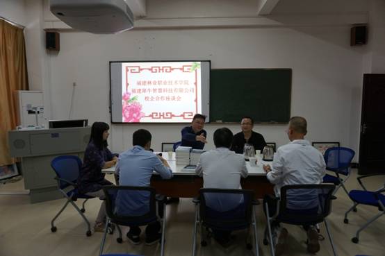2017年10月30日下午,“篮球欧洲杯下注_欧洲杯投注网站下载-官网与福建犀牛智慧科技有限公司校企合作座谈会暨签约仪式”在建筑工程系会议室举行。福建犀牛智慧科技有限公司创始人刘向群、我院副院长严绍裕出席活动。建筑工程系主任郑金兴、副主任彭忠伟,以及建筑工程系廖坤阳、陈燕、张李平、吴超滨等教师参加了座谈会和签约仪式。