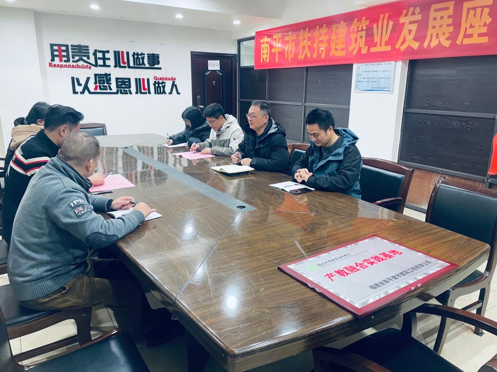 本次会议由福建省南平建宇建筑工程有限公司总经理许福明先生主持,建筑工程系主任彭忠伟老师、系副主任张李平老师及教务科长廖坤阳老师,与福建省南平建宇建筑工程有限公司办公室主任林剑平先生汇聚一堂,共同为产教融合的新时代新征程谋篇布局。