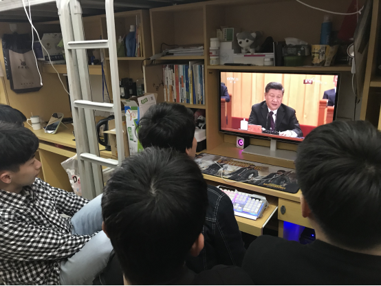 建筑工程系党总支组织教工党员、学生党员及各班级学生在实训一五楼会议室和学生宿舍通过实时网络直播的形式集中收看了大会盛况,在此过程中,师生们怀揣着激动的心情认真聆听习近平总书记的重要讲话,学习领会习近平总书记的重要讲话精神。
