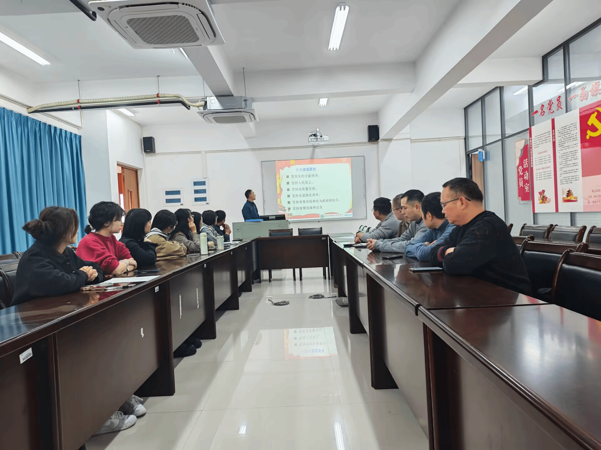 本网讯/为深入学习贯彻党的二十届四中全会精神,确保教师党员在思想上、政治上、行动上同党中央保持高度一致,2025年12月8日,建筑工程系教工党支部书记陈龙开设“学习党的第二十届中央委员会第四次全体会议精神”专题党课。党支部全体教师党员参加学习,重点围绕党的二十届四中全会精神及“十五五”时期发展重要着力点进行系统学习研讨。