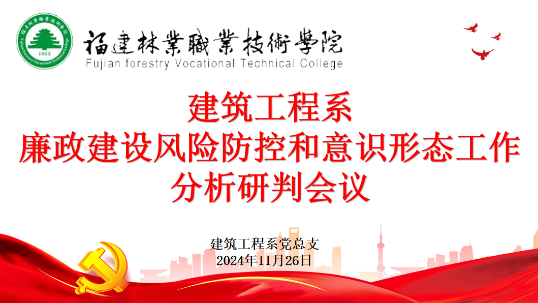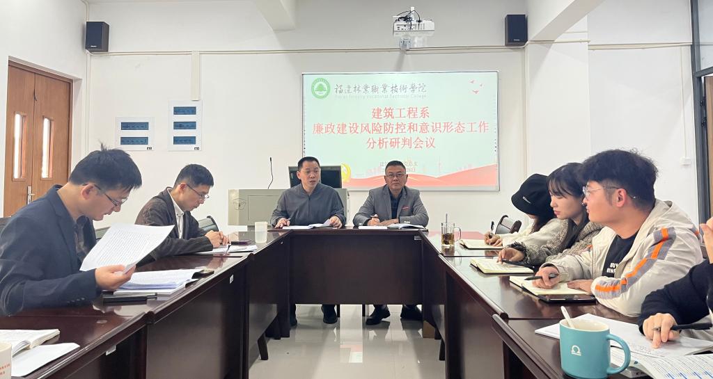 本网讯/为扎实做好建筑工程系廉政建设风险防控和意识形态工作落实落细,加强对重点岗位、关键环节的监督力度,深入推进党风廉政建设和意识形态工作分析研判,2024年11月26日下午,建筑工程系组织召开2024年廉政建设风险防控和意识形态工作分析研判会议。建筑工程系党总支书记魏长专,系主任彭忠伟,系副主任张李平,系党总支委员叶新颖、刘克芹,教工党支部和学生党支部书记廖坤阳、陈慧婷、张道良及其后备人才林燕琼、陈珮琪,全系专职辅导员出席会议,会议由魏长专书记主持。