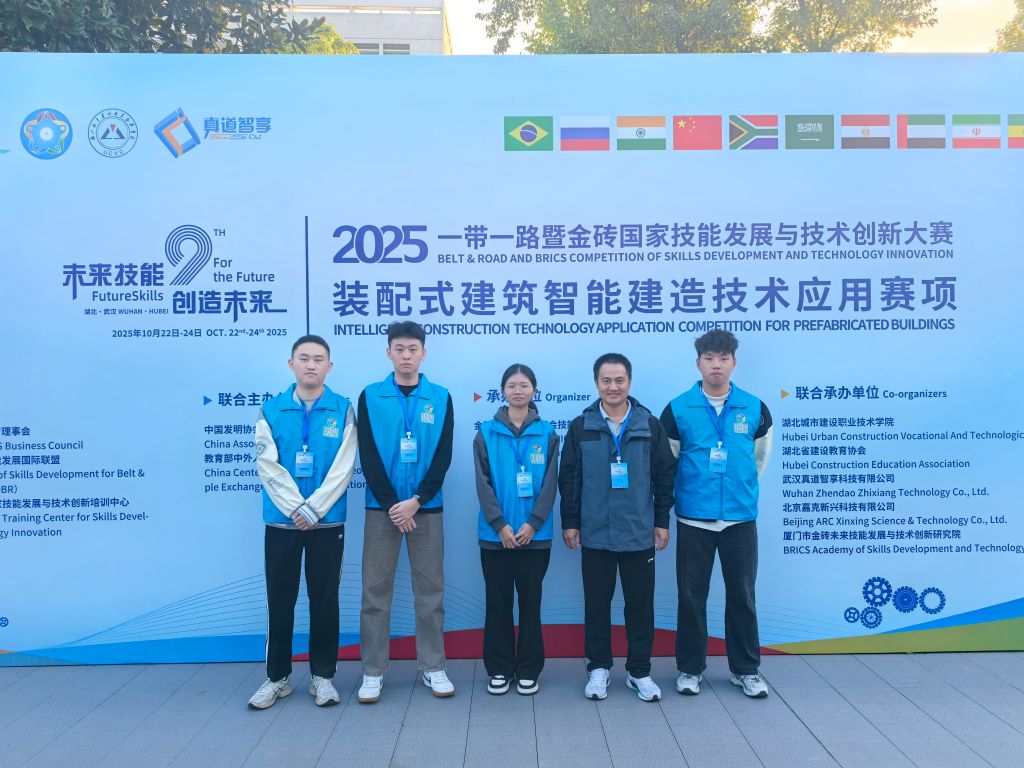 本网讯/近日,2025“一带一路”暨金砖国家技能发展与技术创新大赛装配式建筑智能建造技术应用赛项全国总决赛在湖北武汉落下帷幕。我院智能建造技术专业2302班杨亿萍,2303班林彬源、熊喆昊、林泗春四位同学组成的两支参赛队伍,在全国149支参赛队伍中脱颖而出,最终双双斩获全国三等奖,为学院赢得荣誉。