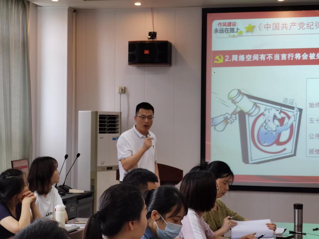 为帮助系部教师党员深入理解和把握《中国共产党纪律处分条例》内容,进一步加强党的纪律建设,确保党的路线、方针、政策得到有力执行,6月18日下午,系党总支书记傅成杰讲授《中国共产党纪律处分条例》(以下简称《条例》)专题党课,系部全体教师党员、非党员青年教师参加学习。