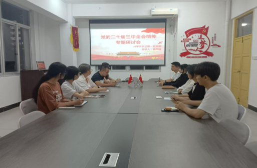 2024年是新中国成立75周年,为隆重庆祝中华人民共和国成立75周年,林学系学生第一党支部正如火如荼的开展“强国复兴有我”群众性主题宣传教育活动,为深入学习贯彻党的二十届三中全会精神,2024年10月15日,林学系学生第一党支部开展“党的二十届三中全会精神”专题学习。此次学习由叶知勇老师主持,支部全体同学参加。