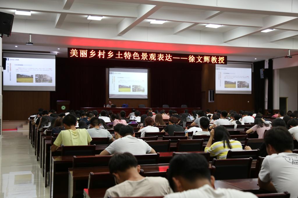 为了紧跟国家号召的“美丽乡村建设”政策,拓展专业技能,开阔学生的知识领域,发现更优秀的园林素材,传承中华文化。2017年5月7日晚19点至21点,园林系特邀请徐文辉教授开展了“美丽乡村乡土特色景观表达”专题讲座。系主任黄勤坚老师、副书记陈剑勇老师、园林系专兼职教师以及全体学生参加了此次讲座。