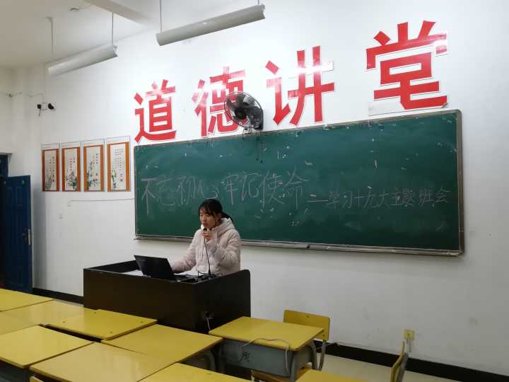 在学习十九大精神主题班会中,孙钰老师向同学们介绍了“过去五年的工作和历史性变革”、“新时代中国共产党的历史使命”、“新时代中国特色社会主义思想和基本方略”等十九大报告十三个部分的内容,并希望同学们课后能加强十九大精神的学习,不忘初心,牢记使命。