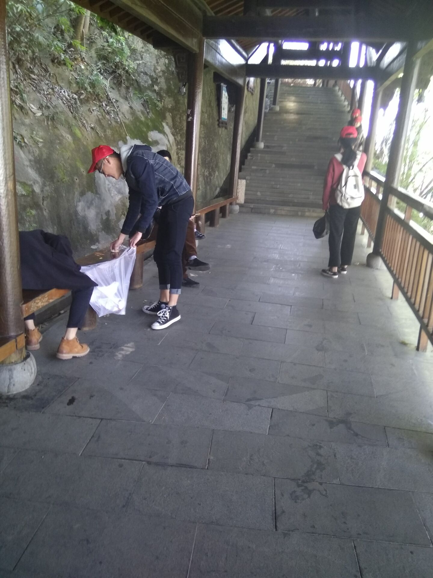 2018年3月10日上午12点整,南普陀志愿者们于九峰山开展活动,志愿者们一路走走停停,寻寻觅觅,不放过地上一丝垃圾。尽管天气比较寒冷,志愿者们仍坚守在自己的岗位,没有一丝懈怠,不放过地上任何一个细小的纸屑。一条道路来来回回地检查、不厌烦、不偷懒、辛勤工作。不只如此,志愿者们还劝导来往路人不乱扔垃圾,不随地吐痰等。最后,在志愿者的努力下,九峰山楼梯的垃圾都被清理干净。
