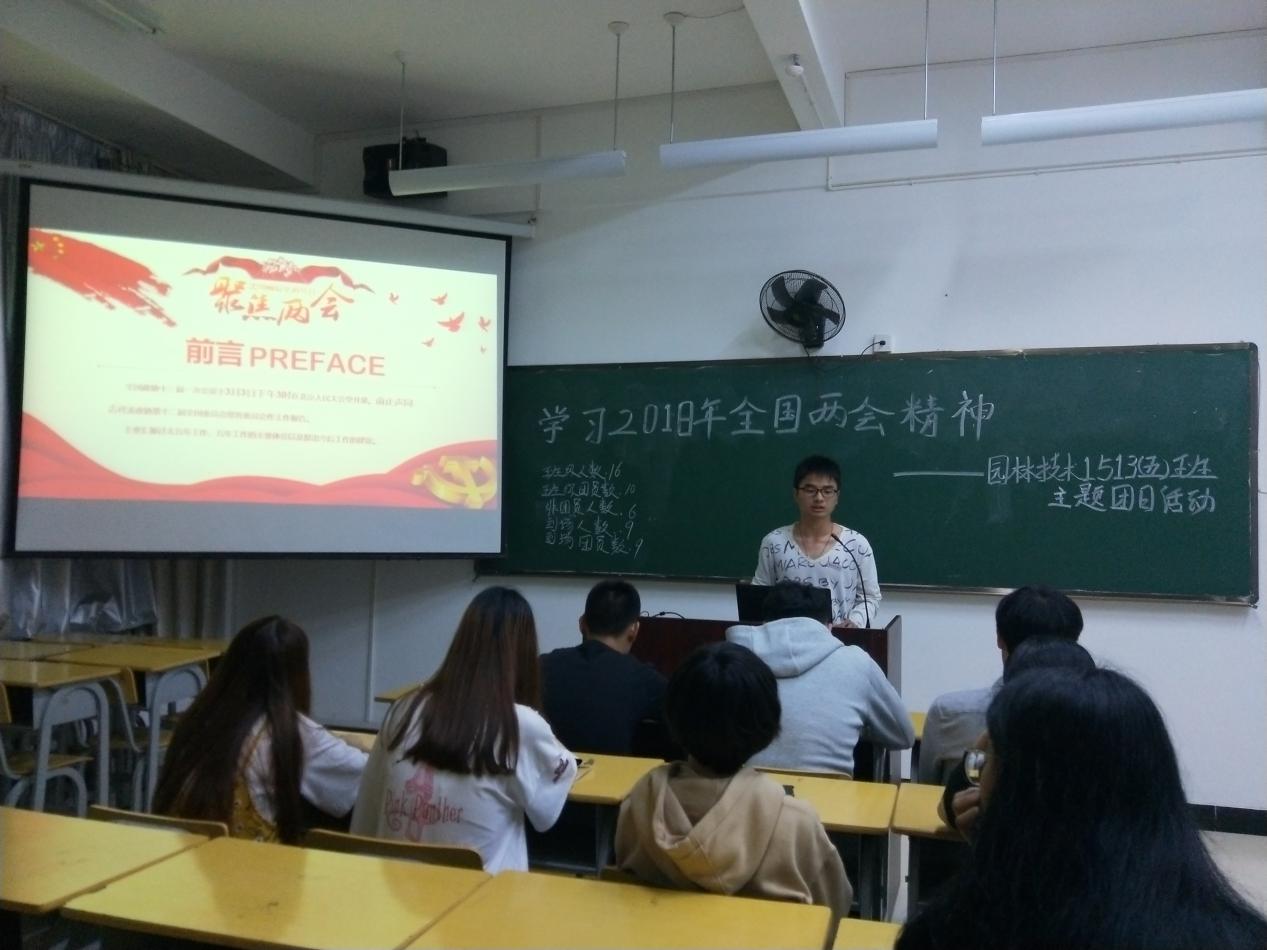 为进一步强化我系团员意识教育,深化团的自身建设,深入贯彻落实“两会”精神,2018年4月12日晚上18点整,我系各团支部于实训四6楼教室开展了以“学习2018年全国两会精神”为主题的团日活动。