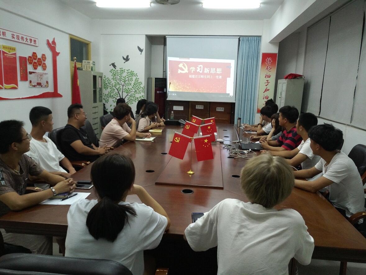 9月3日晚上8点整,园林系组织两委会干部以及园林系各团支部的同学们在园林系两委会办公室、园林系各个团支部的学生宿舍,共同观看由福建省委教育工委组织福建教育电视台拍摄“学习新思想,福建百万师生共上一堂课特别节目。”
