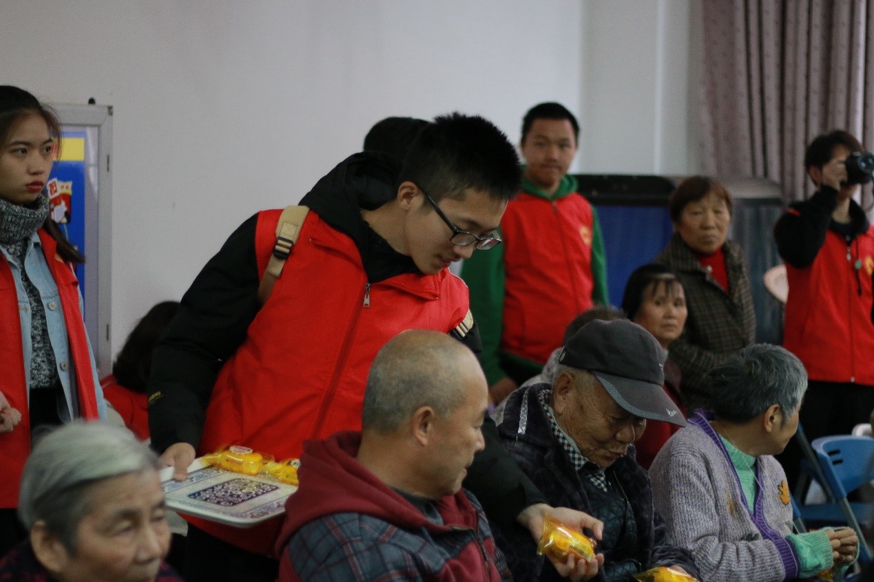 进入护理院后,护理院的负责人先向大家讲解今天的负责内容与注意事项,了解之后,志愿者们分成四个小组,在负责人的带领下,趁着老人的休息时间分发礼物和邀请老人们来看表演。随后,演出开始,精彩的歌舞、好看的相声让老人们掌声连连。在演出间隙,志愿者们还为老人们提供美味的点心,细心地向老人们讲解节目内容。下午16点30分,表演结束,志愿者们不舍地送老人们回到所住楼层,并向他们道别。