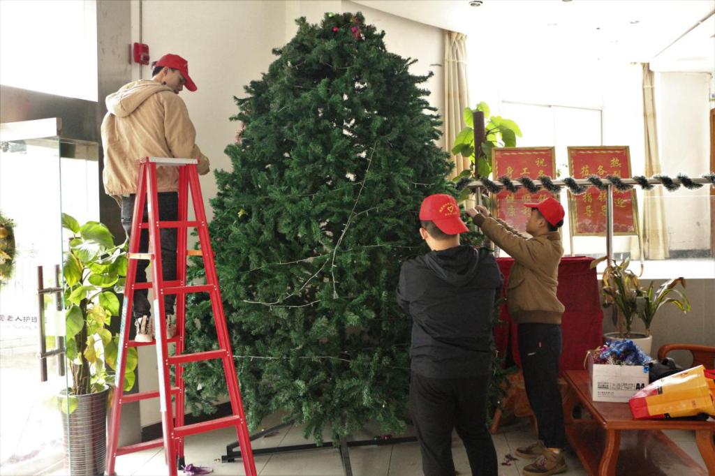 进入圣爱老人护理院后,青年志愿者们在负责人的带领下进行分组,一组为护理院拆解为庆祝节日而布置的道具,一组发挥我系在园林专业上的优势为护理院新建的大厅进行园林景观设计。虽然窗外春寒料峭,但志愿者们脸上仍然洋溢着温暖的笑容,尽己所能为护理院的景观设计群策群力。