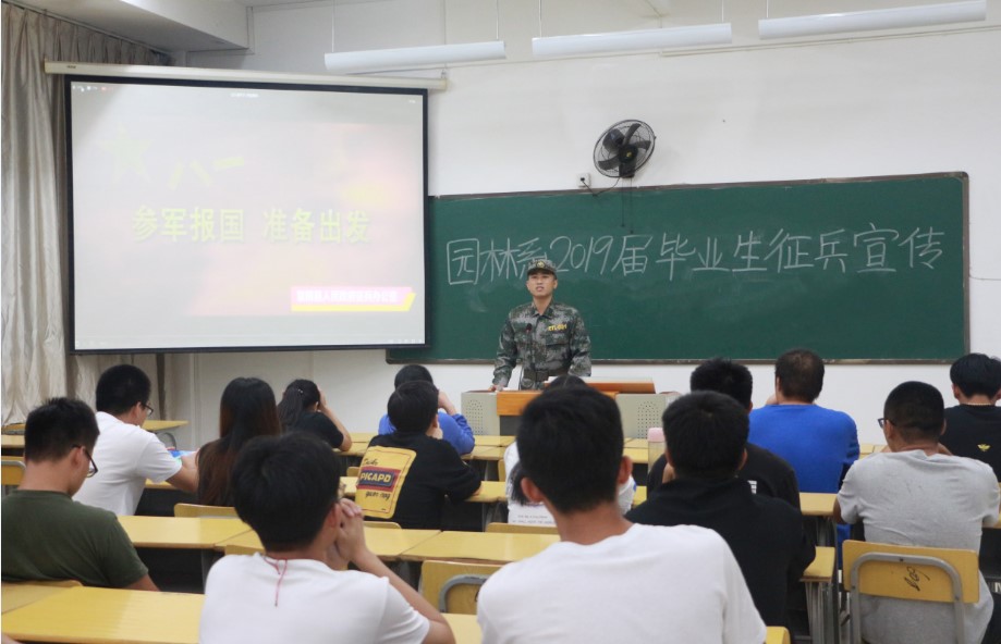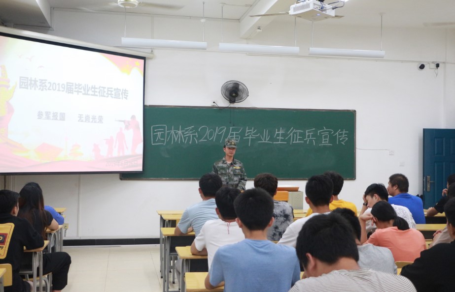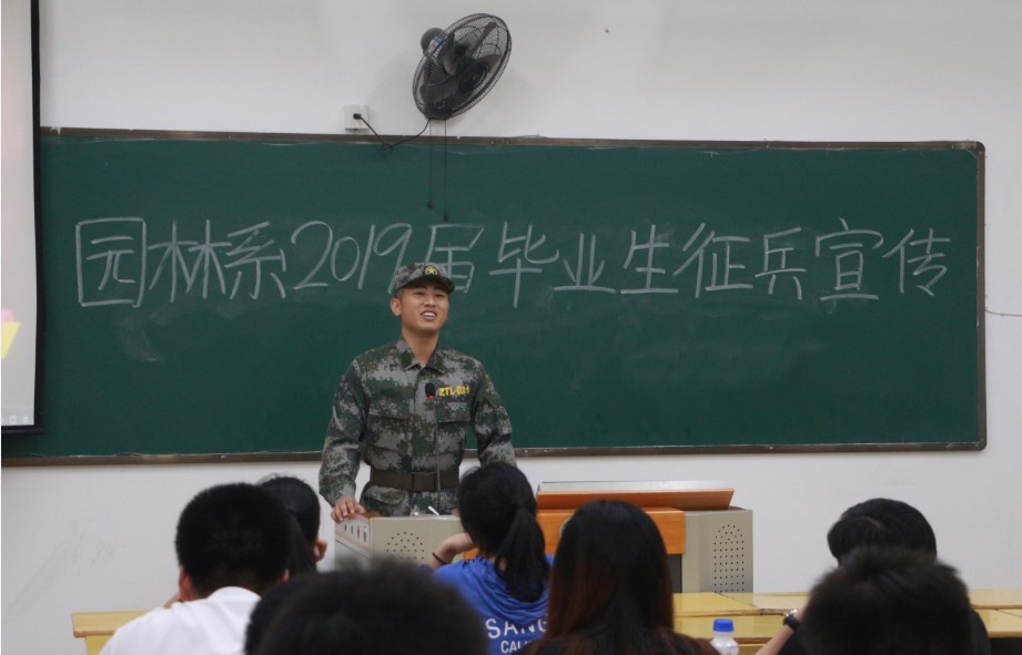 6月21日,园林系邀请了优秀退伍复学军人方锽滨、钟荣杰两位现役军人,开展2019届毕业生征兵宣传活动。