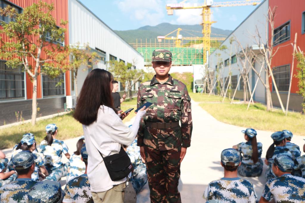教官:大家最开始什么都不懂都很稚嫩,但几天军训下来,身上也能看到一些健康的肤色,包括像一些女生刚开始认为自己做不了,但现在都能融入到一起,大家进步很大。