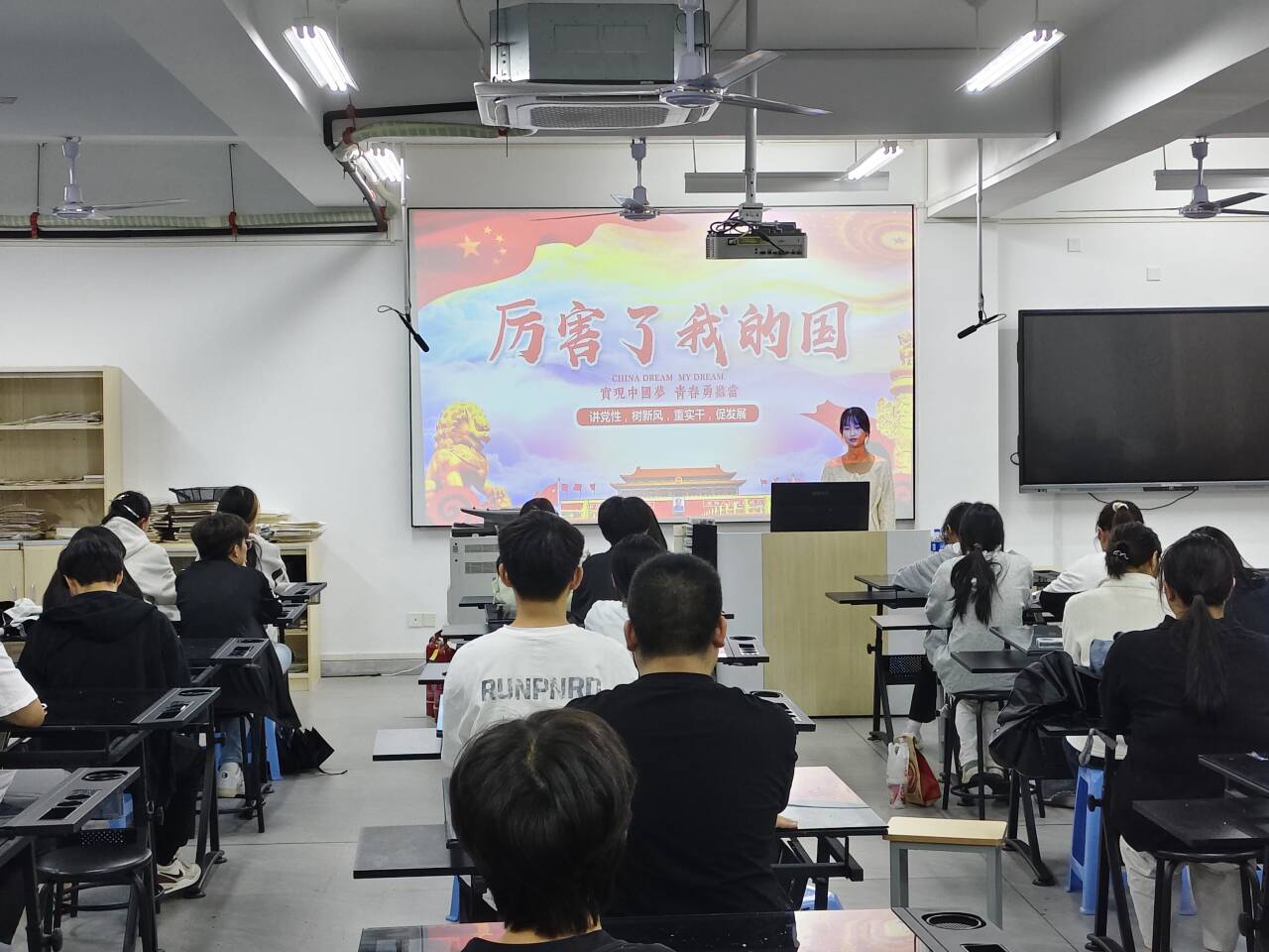 聚焦爱国主义,凝聚奋进力量。辅导员们组织学生观看红色经典影片,结合历史背景为学生解读新中国发展的光辉历程与伟大成就,引导学生深刻理解国家富强、民族振兴的现实意义。在辅导员的带动下,学生在沉浸式体验中激发强烈民族自豪感与历史使命感,纷纷表态,将把个人理想追求融入国家发展大局,为民族复兴贡献青春智慧。