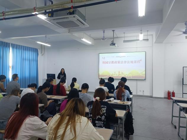普及宗教法规,树立正确观念。辅导员通过政策解读、典型案例剖析,向学生清晰阐述国家宗教工作基本方针与法律法规,明确校园禁止宗教活动的规定,帮助学生树立马克思主义宗教观,引导学生崇尚科学、理性思辨,自觉遵守校纪校规,共同维护校园和谐稳定。