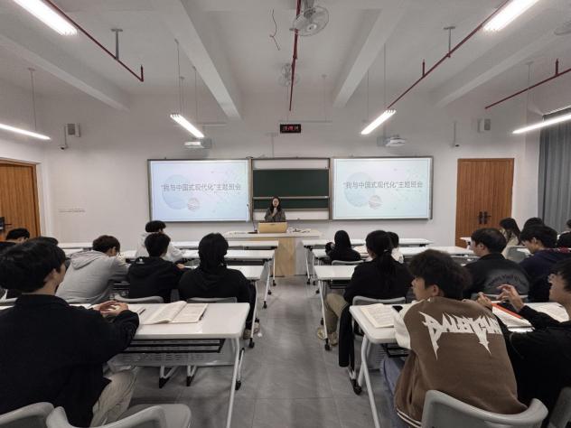班会现场,辅导员以中国式现代化的五大特征为核心脉络,从脱贫攻坚中乡村面貌的蝶变,到科技创新领域“上天入地”的突破;从生态文明建设里“绿水青山”的守护,到和平发展道路上国际合作的共赢,通过鲜活案例与详实数据,生动解读中国式现代化是“人口规模巨大、全体人民共同富裕、物质文明和精神文明相协调、人与自然和谐共生、走和平发展道路”的现代化,让抽象理论变得可感可知。在交流环节,同学们结合专业学习与生活观察踊跃发言,纷纷表示将把个人理想融入国家发展大局,以园林专业知识为基,在生态保护、乡村振兴等领域锤炼过硬本领,用青春之我、奋斗之我为推进中国式现代化贡献力量,现场形成浓厚的思想共鸣氛围。
