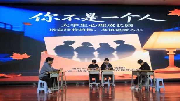 比赛现场气氛热烈,各班级参赛队伍紧扣大学生成长中的心理困惑,将学业迷茫、自我认知偏差、人际交往隔阂等现实问题搬上舞台。演员们全情投入,以真挚自然的表演、富有感染力的台词,生动勾勒出角色从困惑彷徨到豁然开朗的心路历程。一幕幕贴近校园生活的剧情,不仅精准戳中了学生的情感共鸣点,更以沉浸式体验实现了心理健康知识的潜移默化传播,引导在场观众对自我成长、同伴关怀等议题展开深刻反思与主动探索,让心理教育在舞台上焕发别样活力。