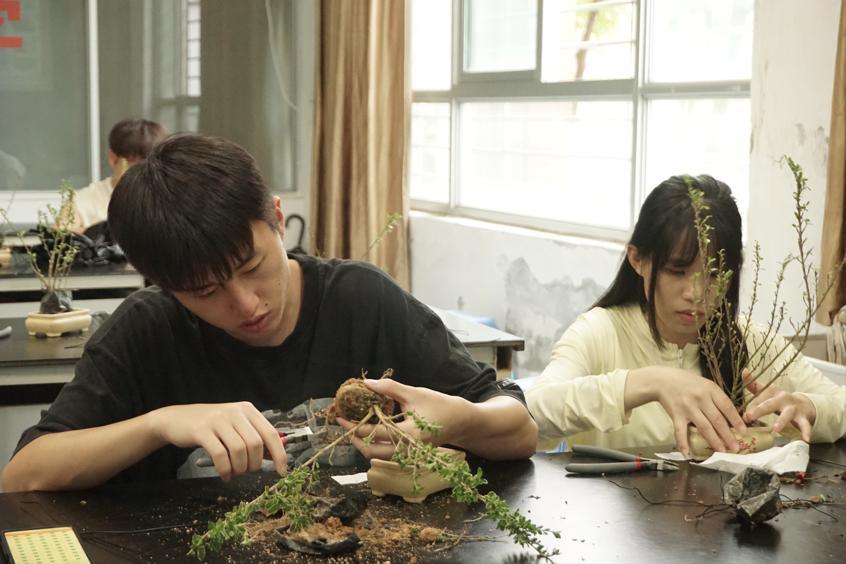 微风乍起,到处充满生机。为提升园林学子的专业实践能力,2023年6月15日下午14点30分,园林系技能活动月“树木盆景制作”赛项于实训一105正式拉开帷幕。本次赛项由指导教师张称称老师一同负责完成,园林系具有盆景制作基础的同学参与此次竞赛。
