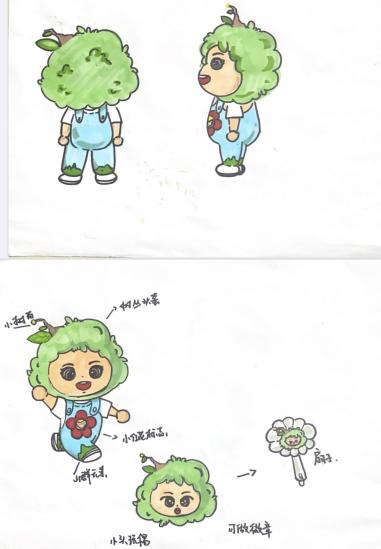 作品说明:此形象IP名为花宝,以小红花为原型,将小红花志愿服务队人像化,花宝手中的小红花代表着小红花志愿服务队的队员,整体象征着小红花志愿服务队会带领小红花队员们走向越来越美好的未来,也会将小红花志愿服务队建设得越来越好。