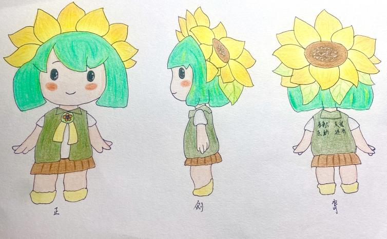 作品说明:该形象运用了向日葵的元素,向日葵向阳而生,太阳则为冉冉升起的新生,故取名为冉冉。该形象为园林系形象IP,所以整体色调选择绿色,角色形象为拥有淡绿色头发,头顶向日葵花环的女孩,身着橄榄绿志愿服,褐色百褶裙和黄色的小靴子,简洁的服饰刚好对应园林系日常活动的需求,便于行动。冉冉的性格大方可爱,乐于帮助他人,同时热爱植物,积极尝试有关园林的技术学习。设计思路源于向日葵,向日葵的精神正好对应园林人的精神面貌,积极向上而又阳光开朗。
