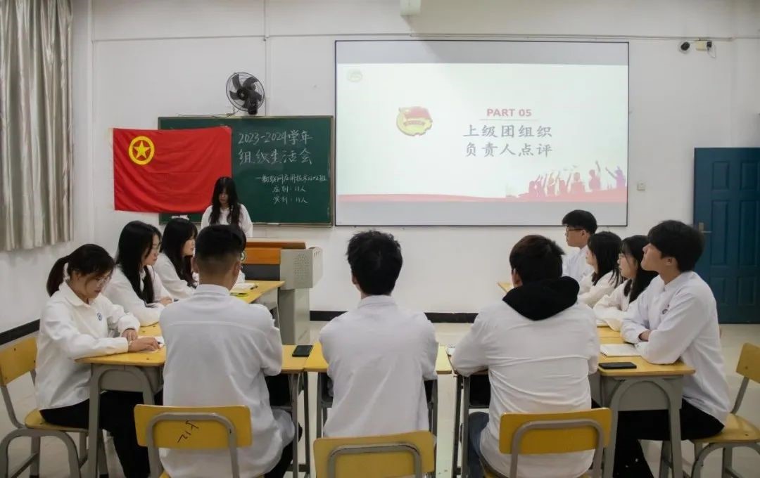 全体成员起立,齐唱团歌《光荣啊,中国共青团》。一朝入团,一心向党,在激昂澎湃的旋律中,组织生活会宣告正式开始。