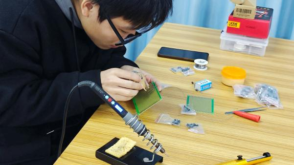 比赛伊始,严涛老师对焊接使用、操作规程、焊接技巧等方面进行了全面的讲解,帮助同学们对比赛有了更为清晰全面的认识。随即比赛便正式拉开帷幕,参赛选手们全神贯注,手持电烙铁和焊锡丝,娴熟地将零散元件焊接为精巧的电路板,感受电流与焊锡交织出的奇妙火花。每一个动作都透露出果断与坚定,每一个步骤都显得专注和熟练。经过激烈的角逐,确定了本次大赛的一等奖、二等奖、三等奖: