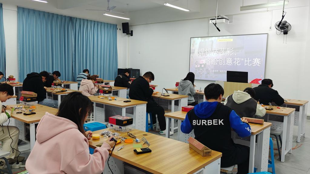 为激发并培育同学们实践能力和创新思维,深化同学们的焊接技艺,促进校园文化的多元化发展。2024年11月29日园林系电子产品创新协会于园林楼405开展“焊锡技艺彩,熔绘创意花”比赛。